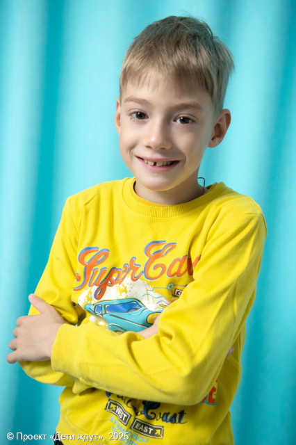 Миша — серьезный, послушный и любознательный мальчик. Он отстает в развитии от сверстников, но это не мешает ему радоваться жизни и познавать мир в своем неторопливом темпе. На контакт мальчик идет избирательно, ему необходимо время, чтобы присмотреться к новым людям и изучить обстановку. С ребятами у Михаила ровные, бесконфликтные отношения. У Миши есть сложности с речью, но занятия с логопедом и дефектологом дают результат. Речь Миши стала более понятна, ребенок перестал использовать в разговоре жесты, старается говорить четко, развернутыми предложениями. Учится Мишенька в коррекционной школе, с программой справляется. Все задания выполняет с интересом и радуется, когда его хвалят педагоги. Мальчик стал более самостоятельным, с удовольствием выполняет небольшие поручения. В свободное время Миша смотрит мультики, собирает пазлы, слушает сказки и всегда переживает за главных героев. За лето Мишенька физически окреп, с увлечением гоняет на самокате и играет с детьми в футбол.
