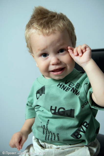 Игорь — общительный, любознательный и невероятно жизнерадостный мальчик. Он часто улыбается и легко идет на контакт. Игорек очень ласковый, любит тактильное общение и с удовольствием проявляет нежность. Интересы мальчика соответсвуют его возрасту: он обожает играть с машинками, катая их по полу, играет в мяч, приходит в восторг от музыкальных игрушек. Услышав веселую песенку, Игорь сразу начинает танцевать. Еще одно его любимое занятие — игра с конструктором. Игорь позитивно настроен и к взрослым, и к детям, охотно с ними идет на контакт. Речь у него пока только развивается: он учится говорить и общается односложными фразами. Мальчик самостоятелен в быту: у него спокойный сон, хороший аппетит, и он уже сам уверенно кушает.